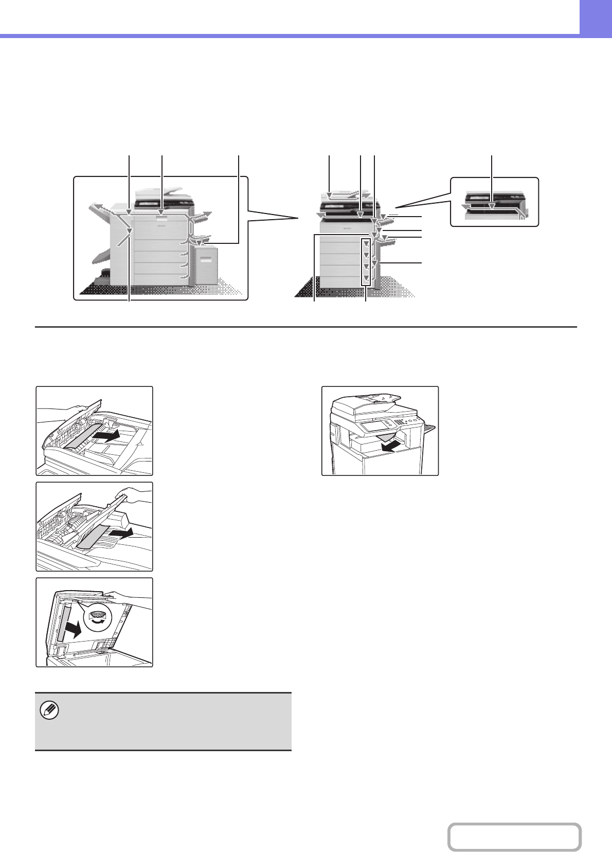 If you require more information when reading the instructions in the touch panel, see the paper misfeed illustrations
