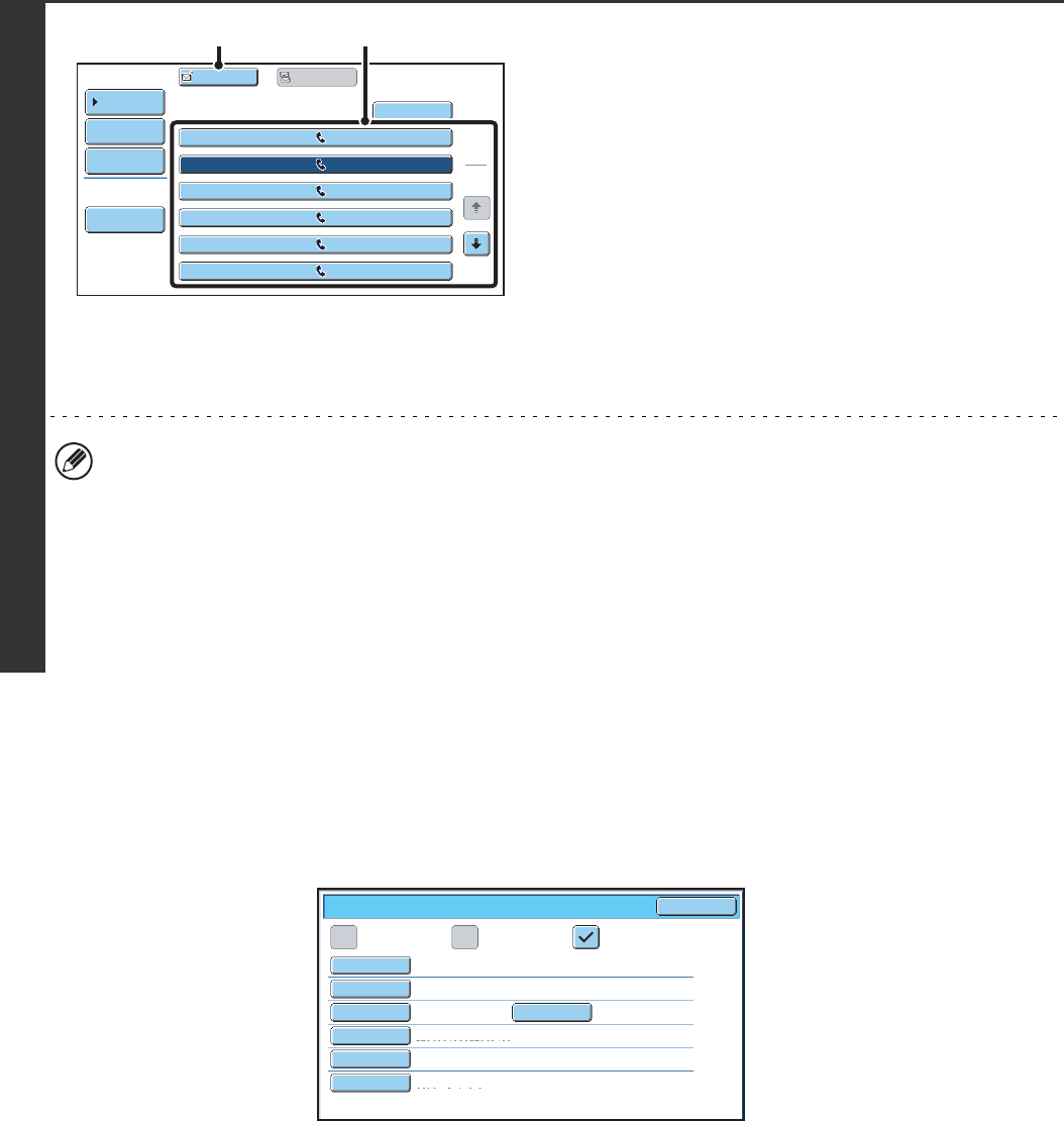 Touch the key of the destination and then touch the [Detail] key. The information stored for the selected destination