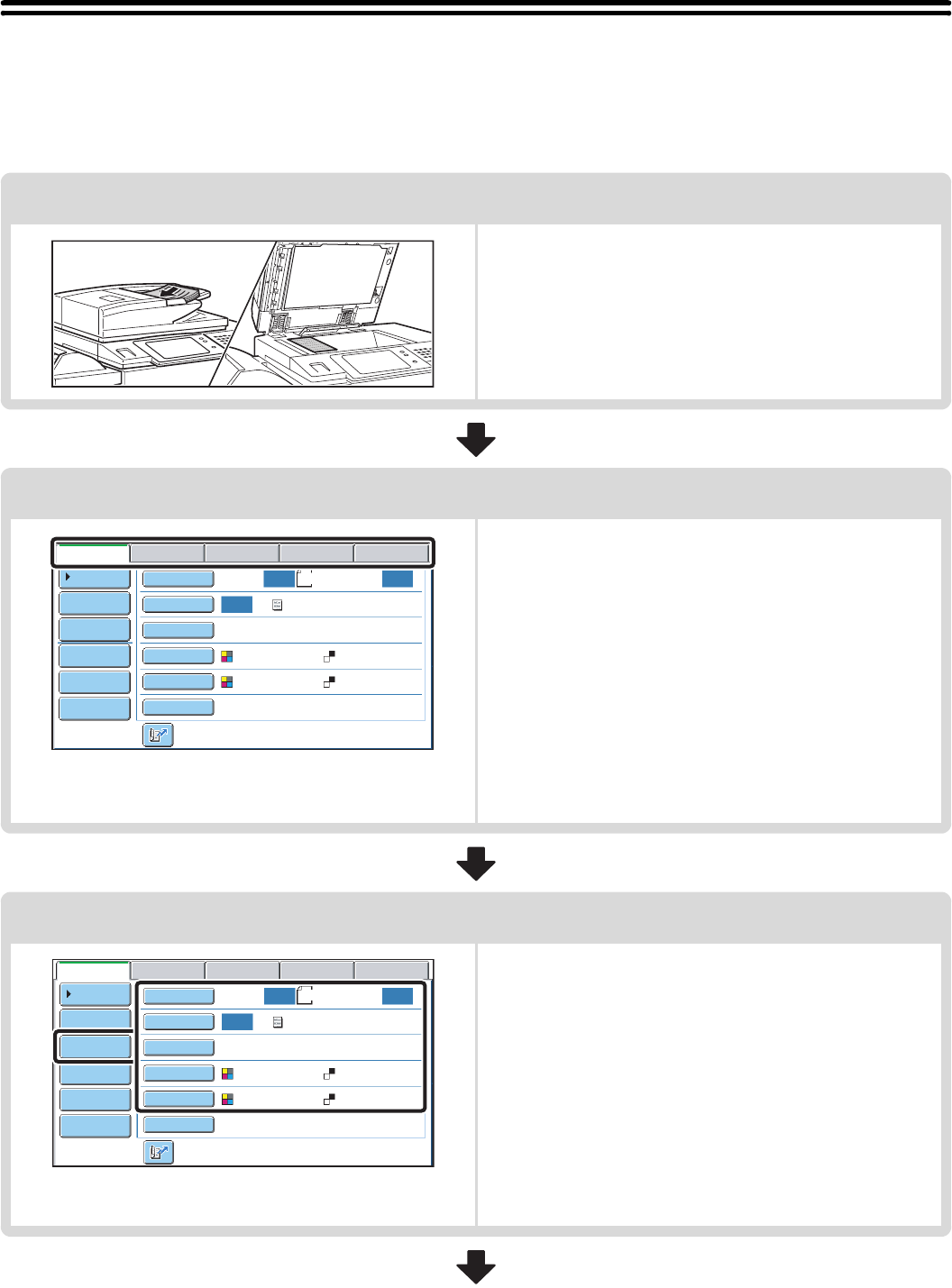 This section explains the basic procedure for scanning and transmission. Select settings in the order shown below to