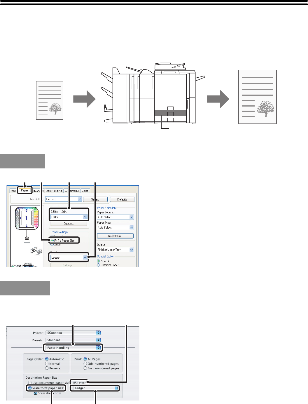 The following example explains how to print a letter size document on ledger size paper.