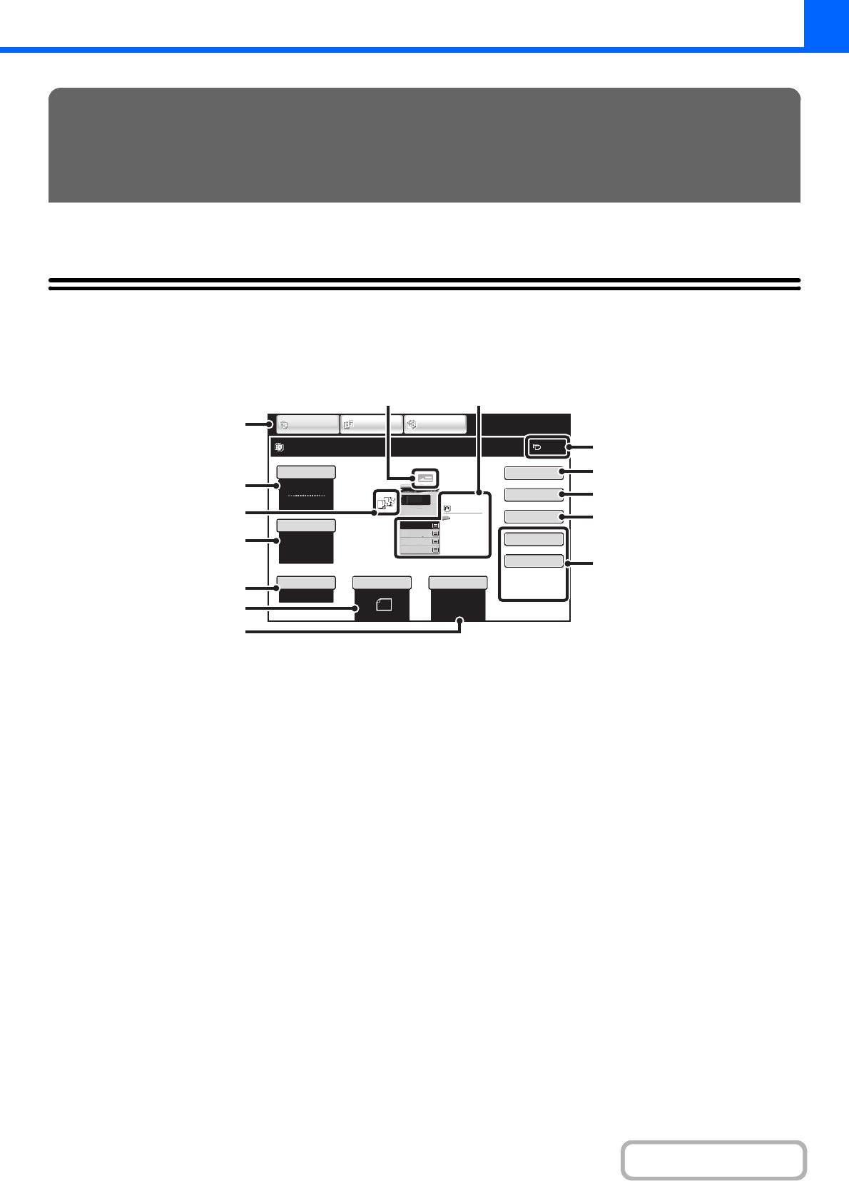 Touch the [COPY] key in the touch panel to open the base screen of copy mode.