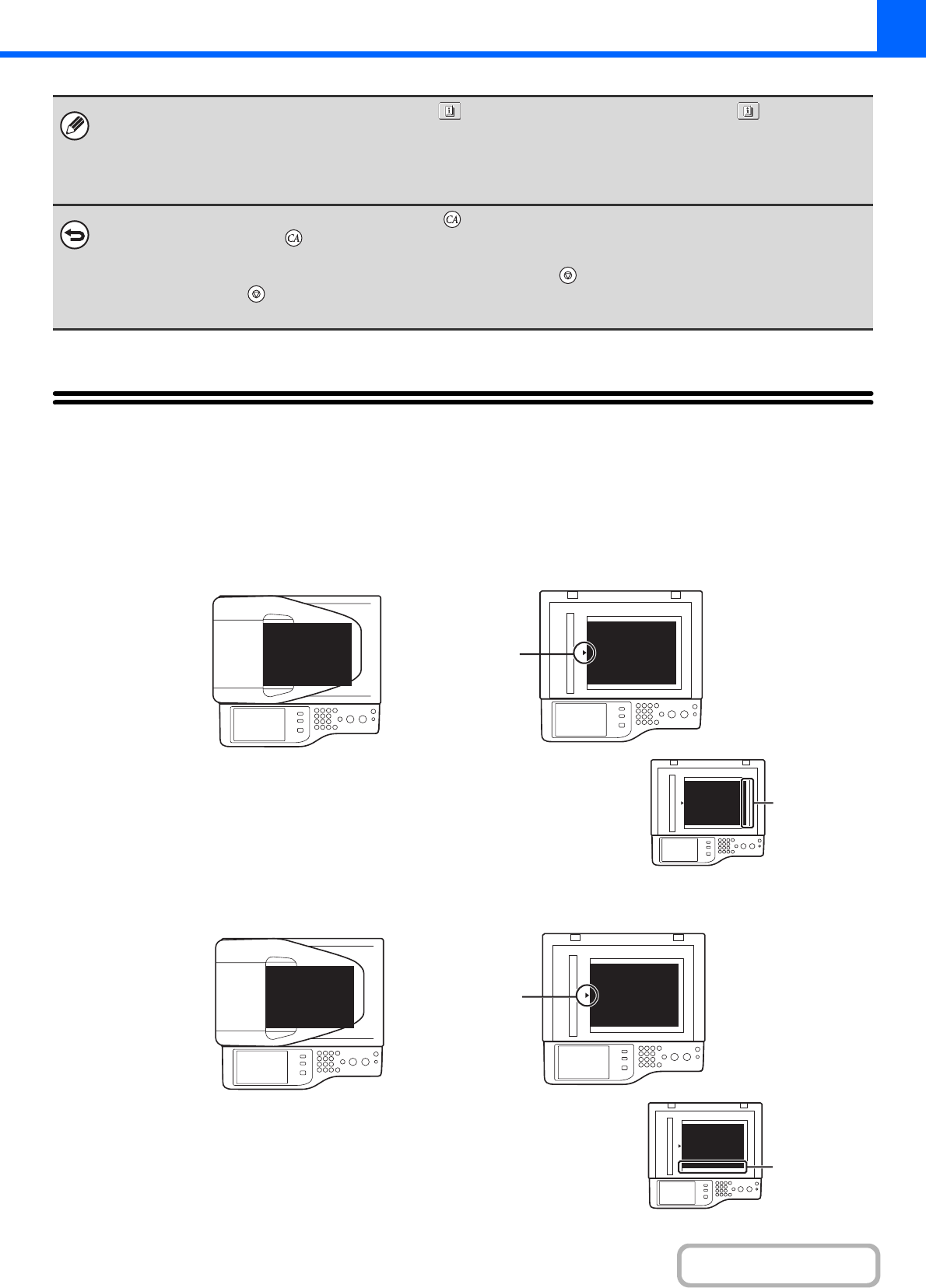 To stop scanning of the original and copying, press the [STOP] key ( ).