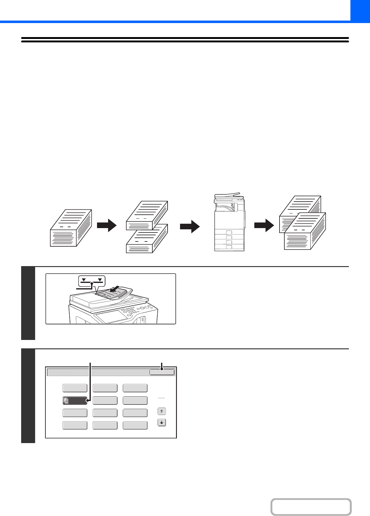 When copying a very large number of originals, this function allows you to divide the originals into sets and feed each