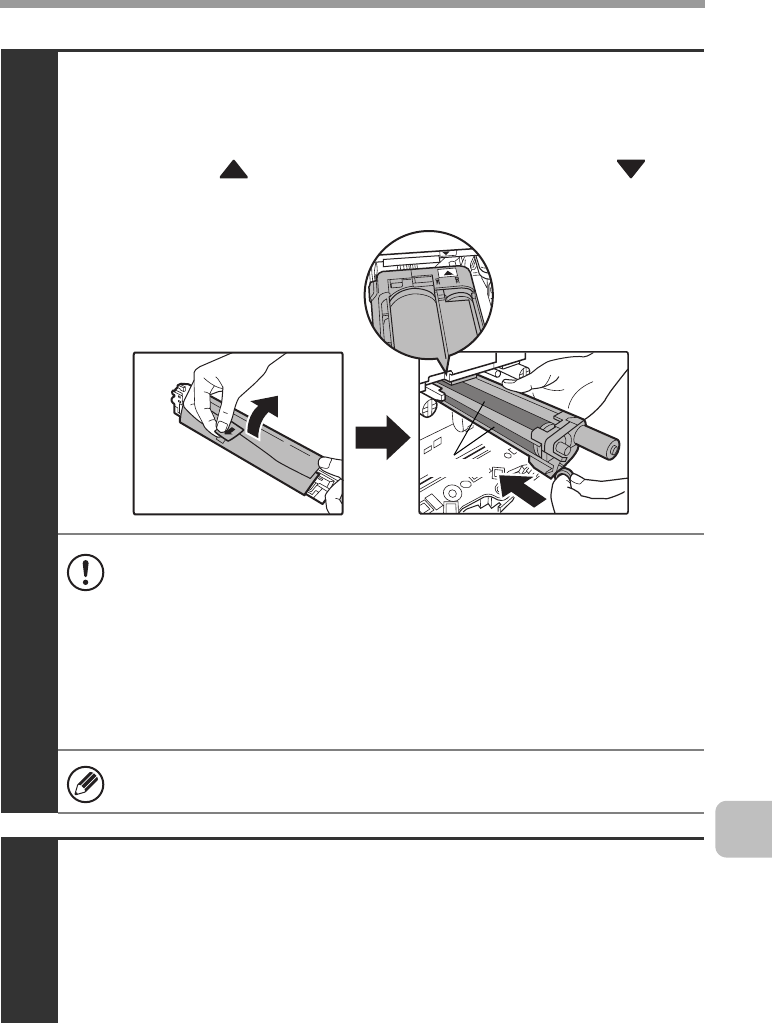 container, see steps 7 to 8 and steps 10 to 11 of "Replacing the developer