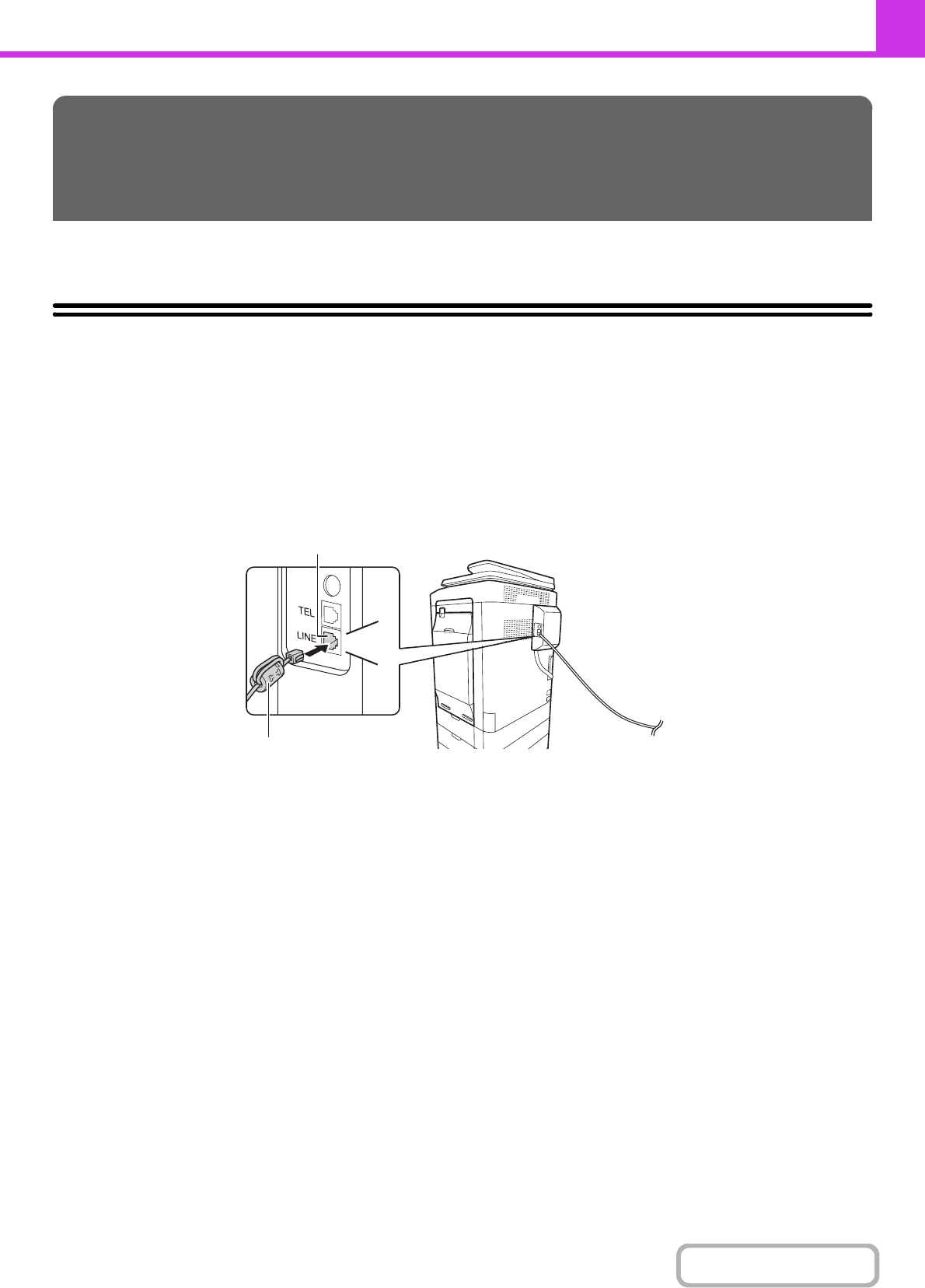 Be sure to use the provided telephone line cord to connect the machine to the wall telephone jack. Connect the end of