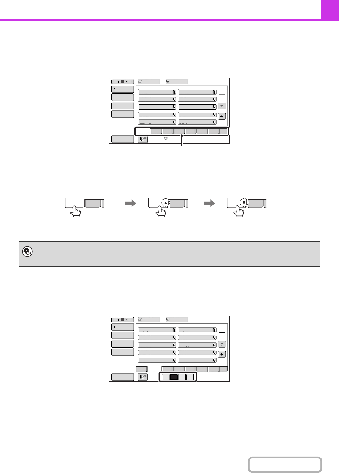 Indexes make it easy to search for a destination (one-touch key). The destinations are displayed separately using