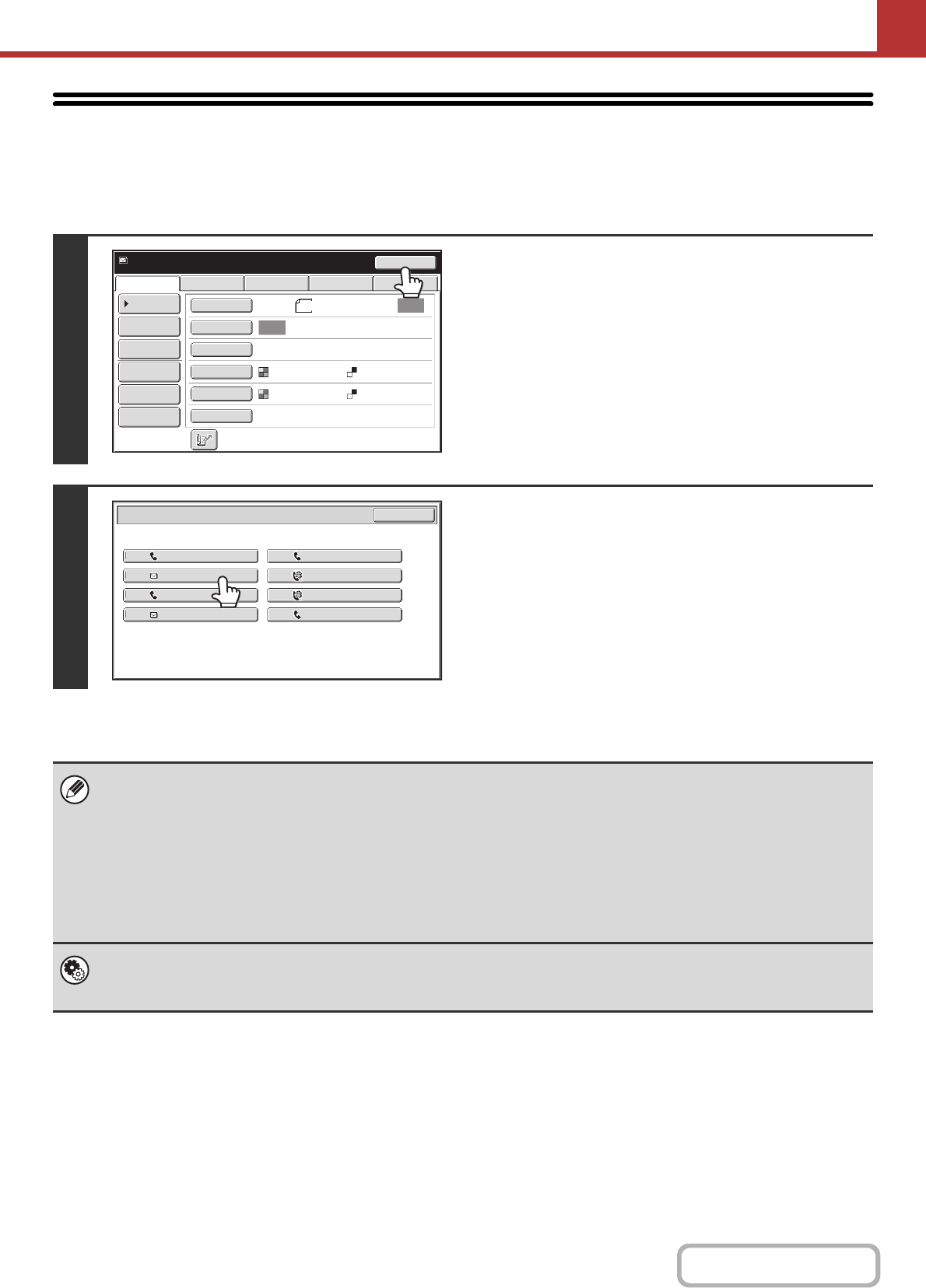 • When the [Resend] key is touched and a destination selected, the mode of the selected destination is automatically