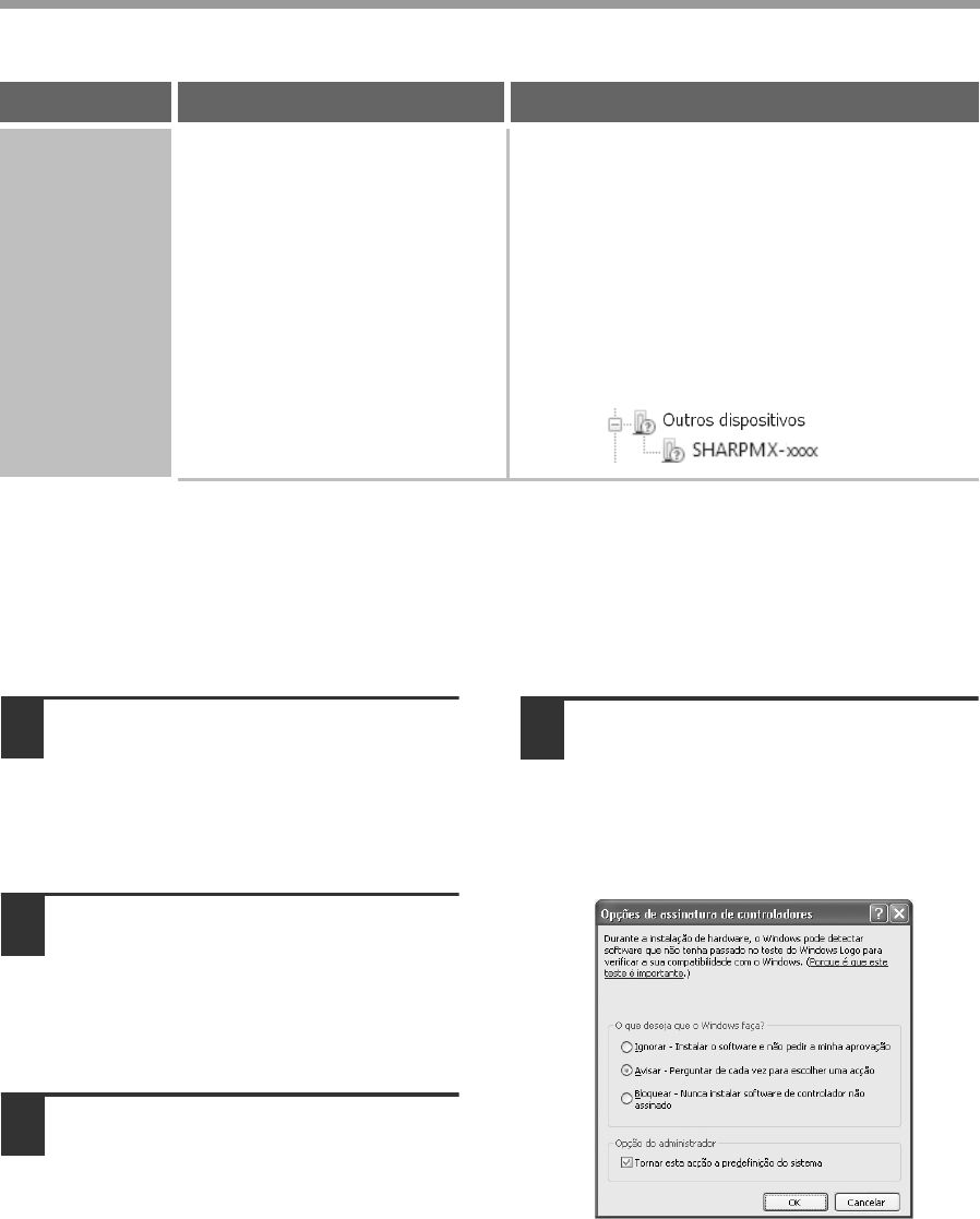 X Não é possível instalar o controlador da impressora