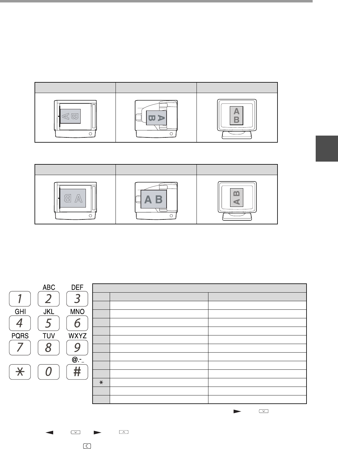 followed by letters in the order marked above the key). The keys used for entering characters are shown below.