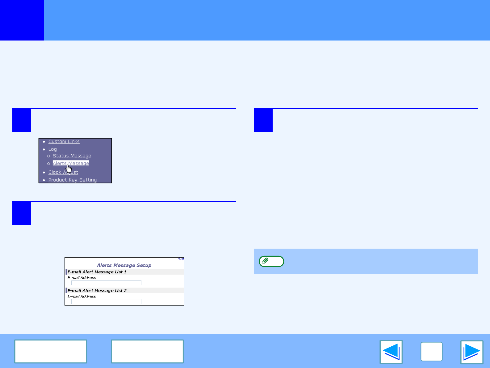 To set up the alert message, follow the procedure below.