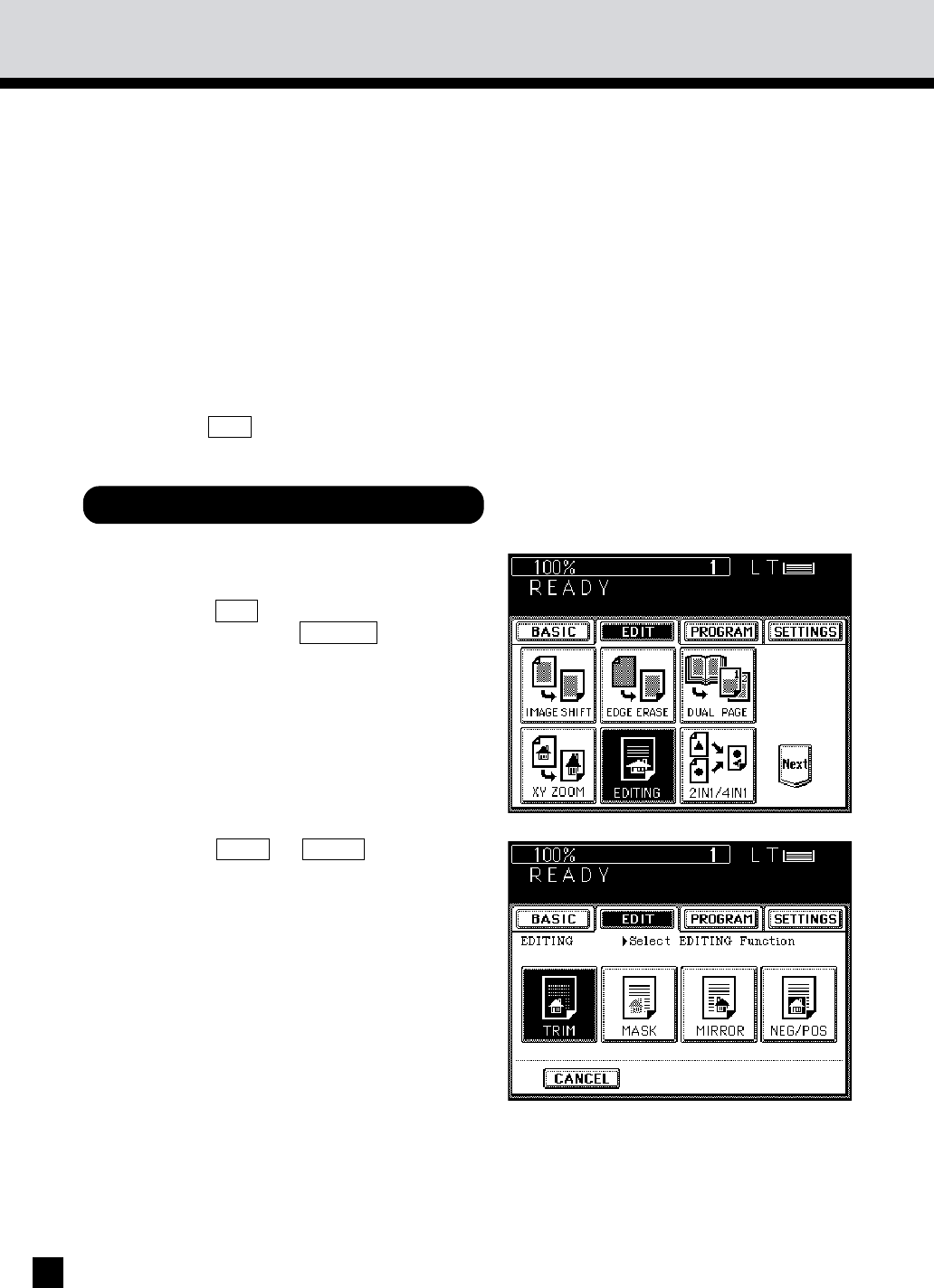 and then press the EDITING key.