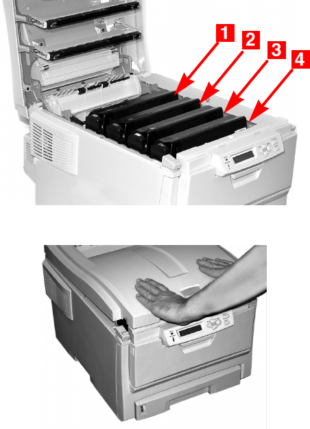 5. Place the four image drums/toner cartridges back in the