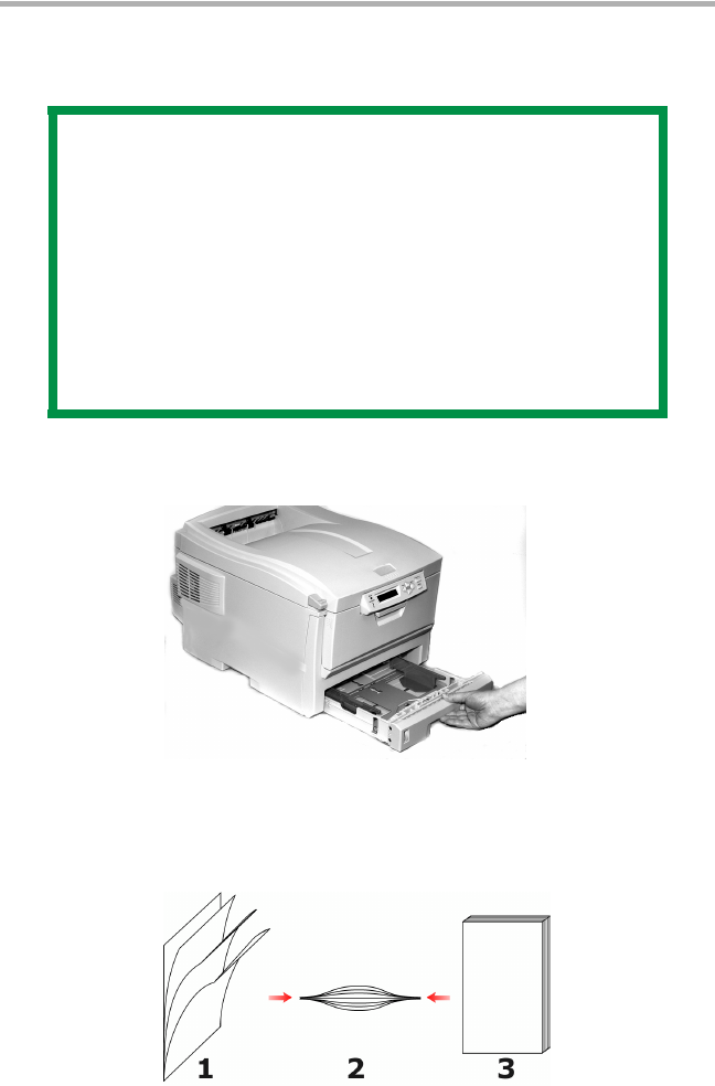 2. Fan the paper to be loaded at the edges (1) and in the