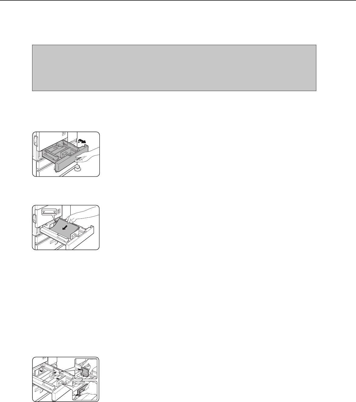 For paper tray 1, 8-1/2" x 11", A4 or B5 size paper can be set. Use the following procedure to change the size as