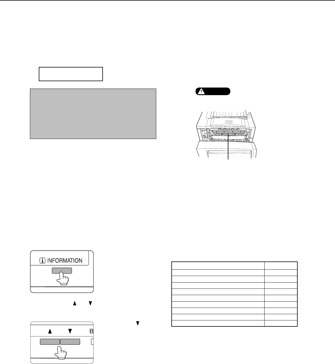 If the INFORMATION key is pressed when a misfeed has occurred, the approximate misfeed locations will be