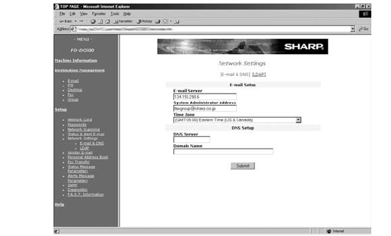 Settings for your E-mail server and DNS server must be configured in order to