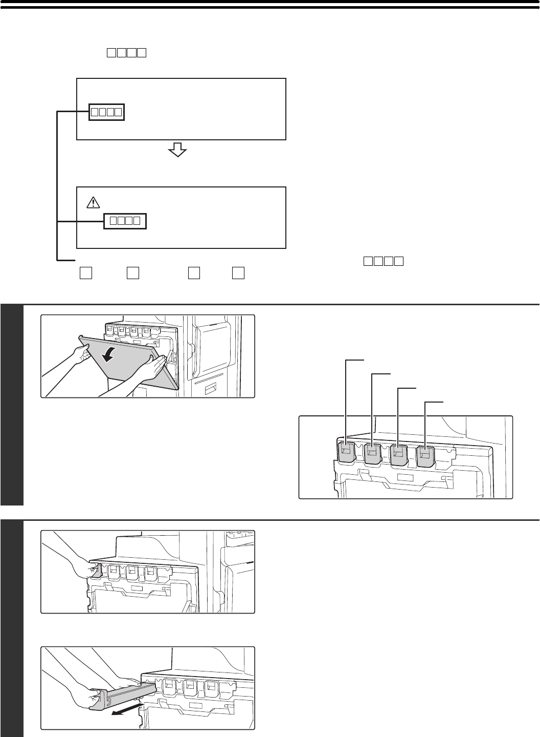 Example: Replacing the yellow toner cartridge Hold the toner cartridge with both hands as shown and pull it