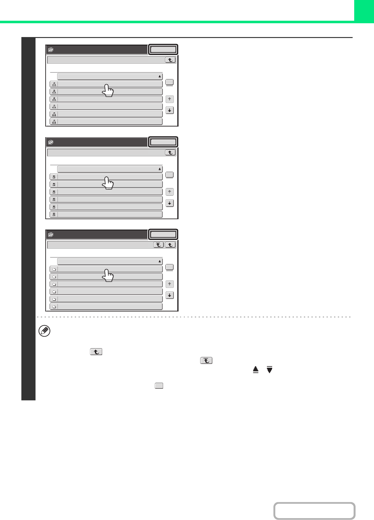 • Touch the key to move up one folder level.