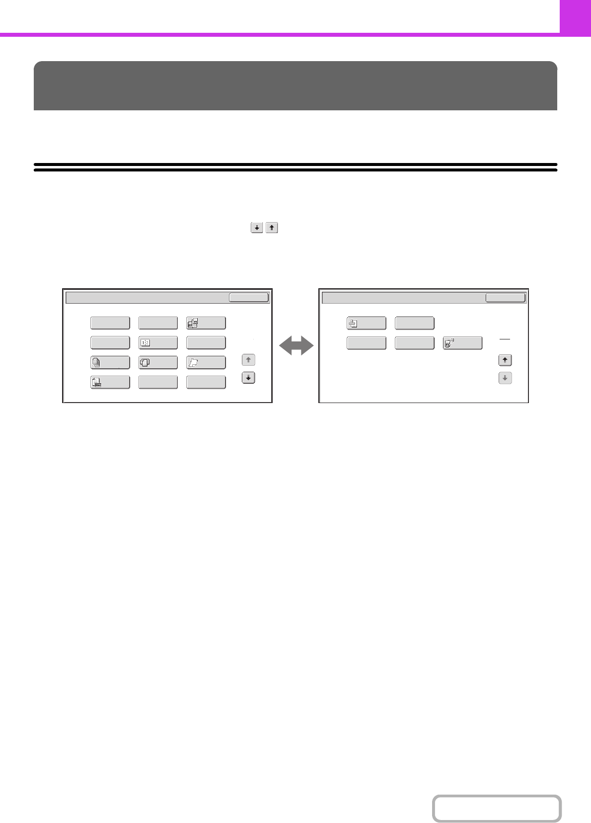 modes menu consists of two screens. Touch the key to switch between the two screens. When the [OK] key is