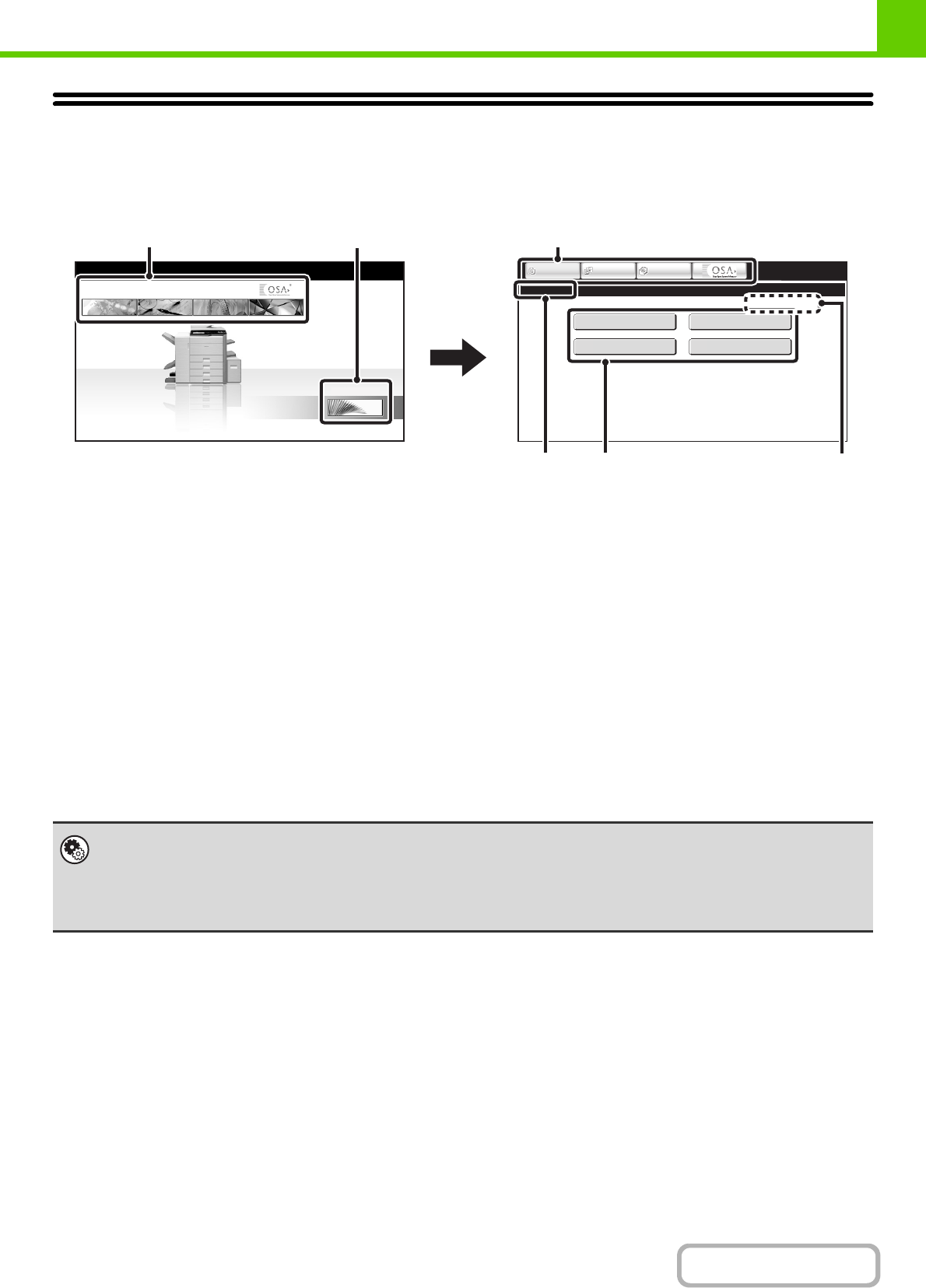When the [HOME] key is pressed on the operation panel, the home screen appears in the touch panel.