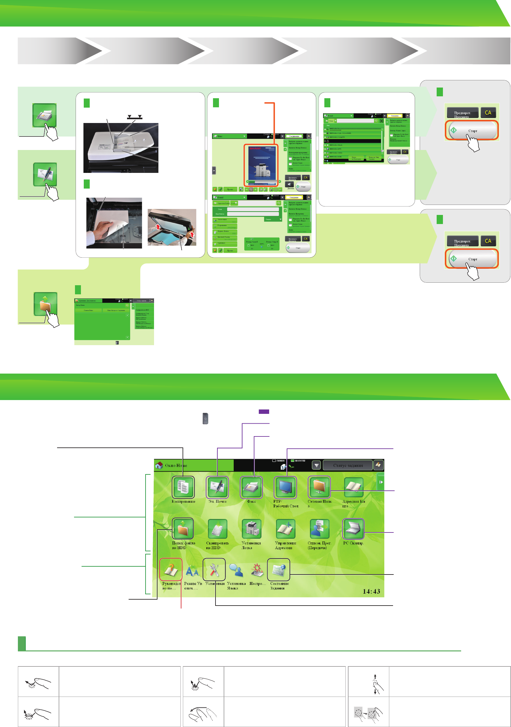 Помимо использования традиционного одного касания при работе с сенсорной панелью также можно использовать длинные касания, щелчки и скользящие движения.
