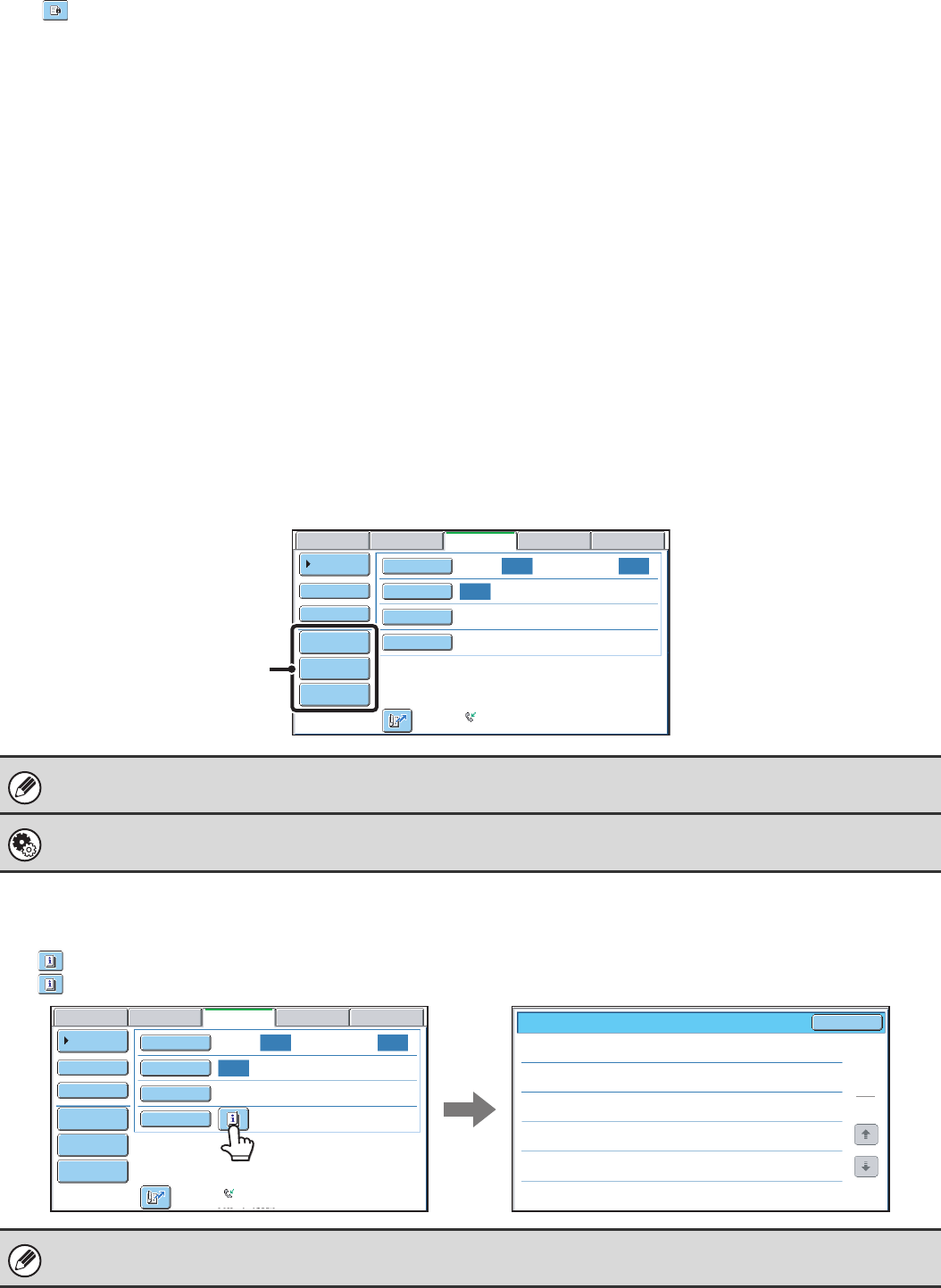 The key can be touched to display the selected special modes. To close the screen, touch the [OK] key.