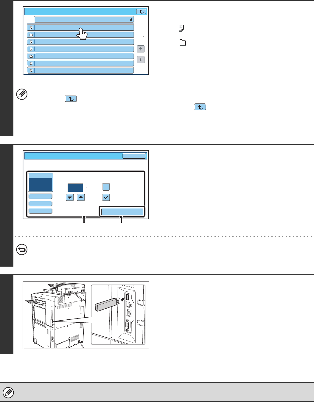 screen. Touch this key to return to the root folder (the top folder level of the selected USB memory).