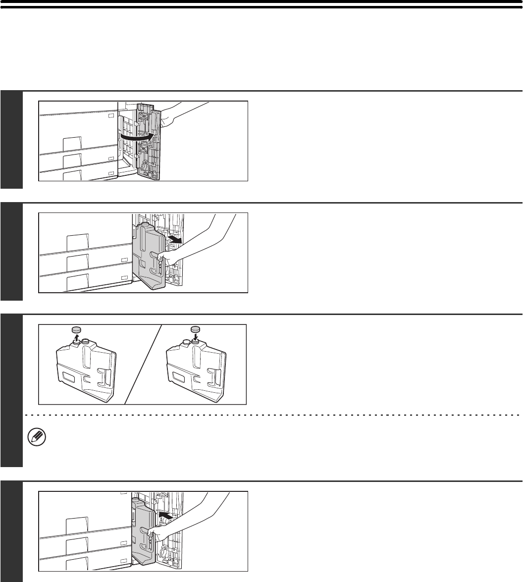 "Replace used toner container." will appear. Follow the procedure below to replace the waste toner box.
