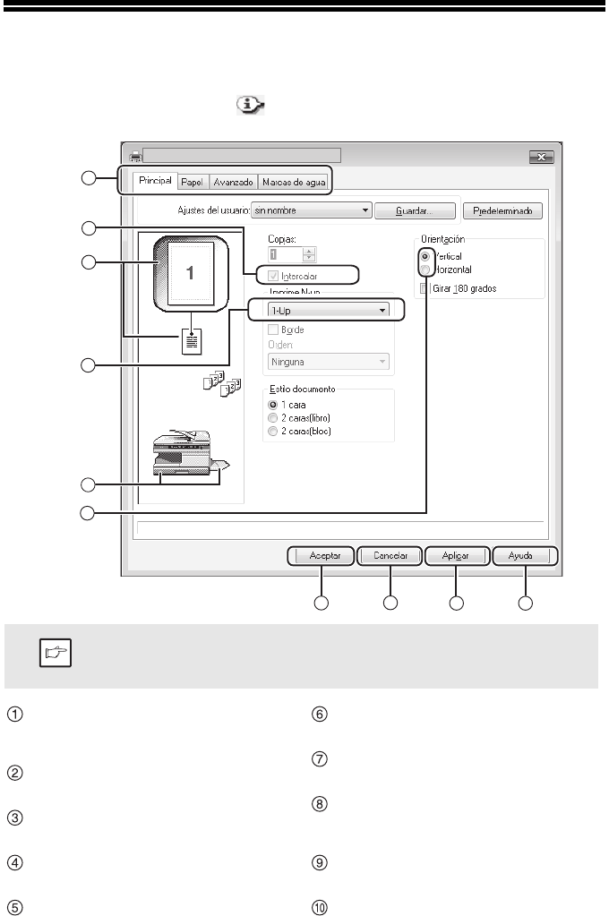 en la pantalla de configuración del driver de impresora. Cuando una restricción sea efectiva,