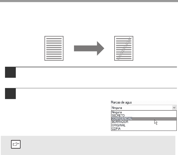 Es posible añadir texto tenue al fondo de la imagen impresa como marca de agua. Es posible