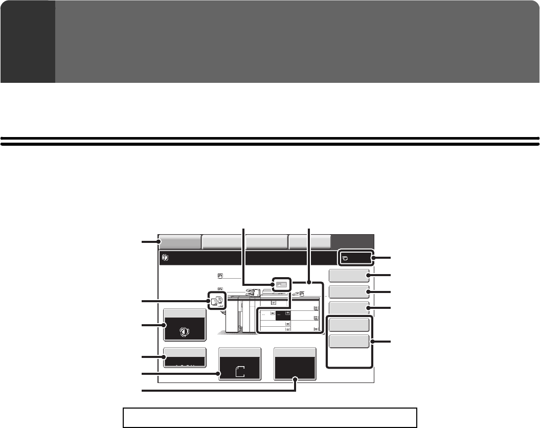 Touch the [COPY] key in the touch panel to open the base screen of copy mode.