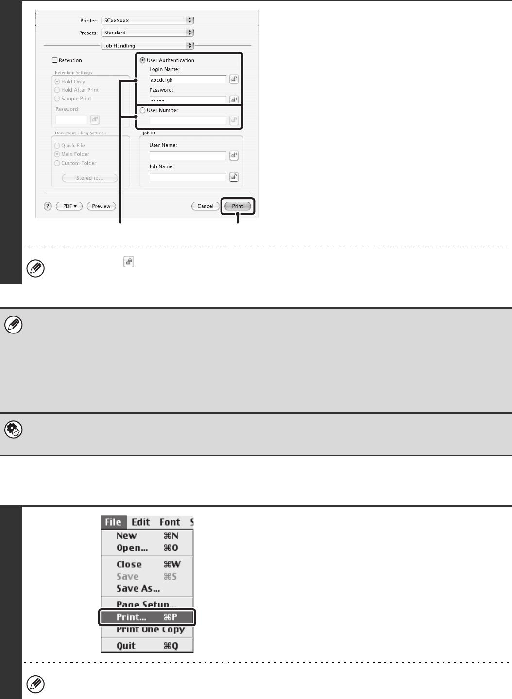 • Normally printing is possible without entering your user information. (In this case, the printed pages will be added to the