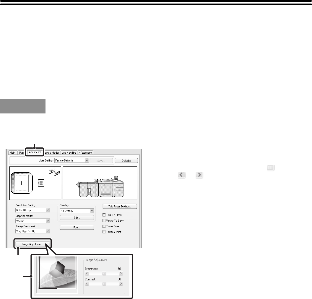 The brightness and contrast can be adjusted in the print settings when printing a photo or other image. These settings