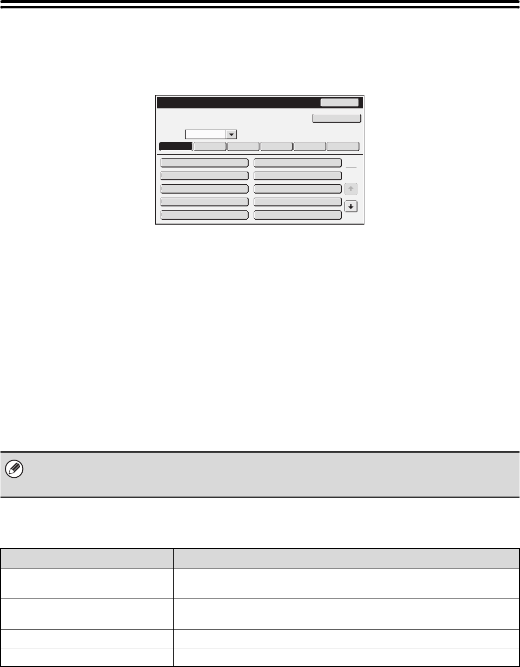 When the [Document Filing Control] key is touched, the following screen will appear.