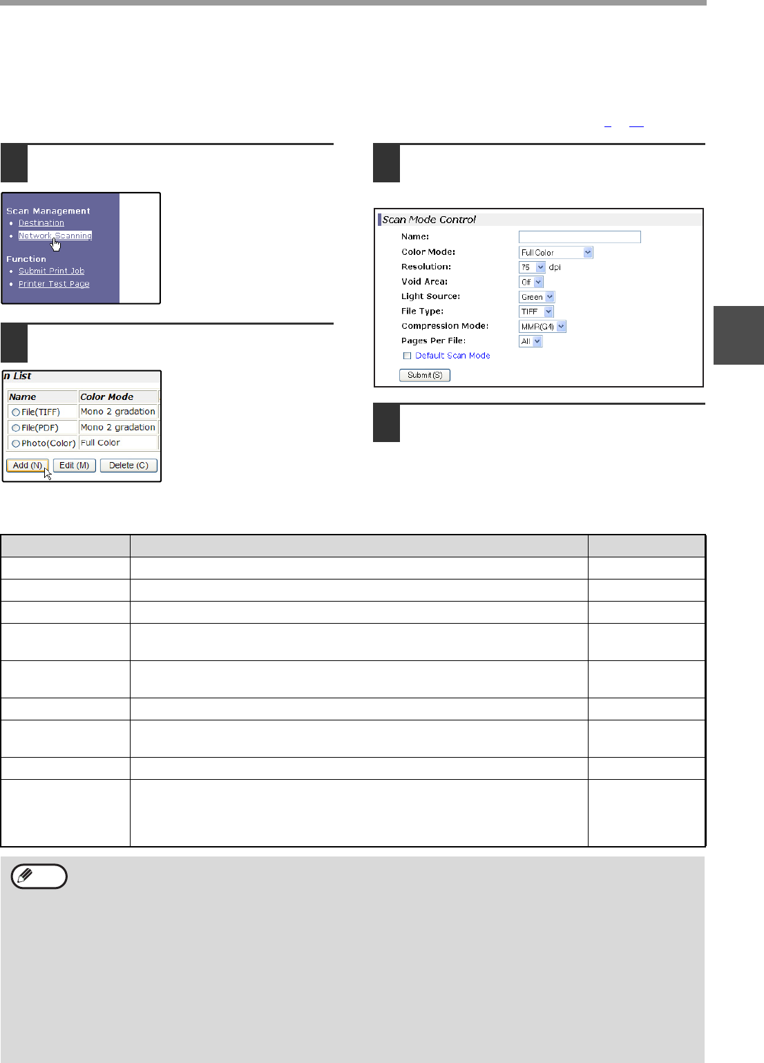 of settings is called a "Scan Mode". When storing a destination, you can select one of the stored scanned modes. The
