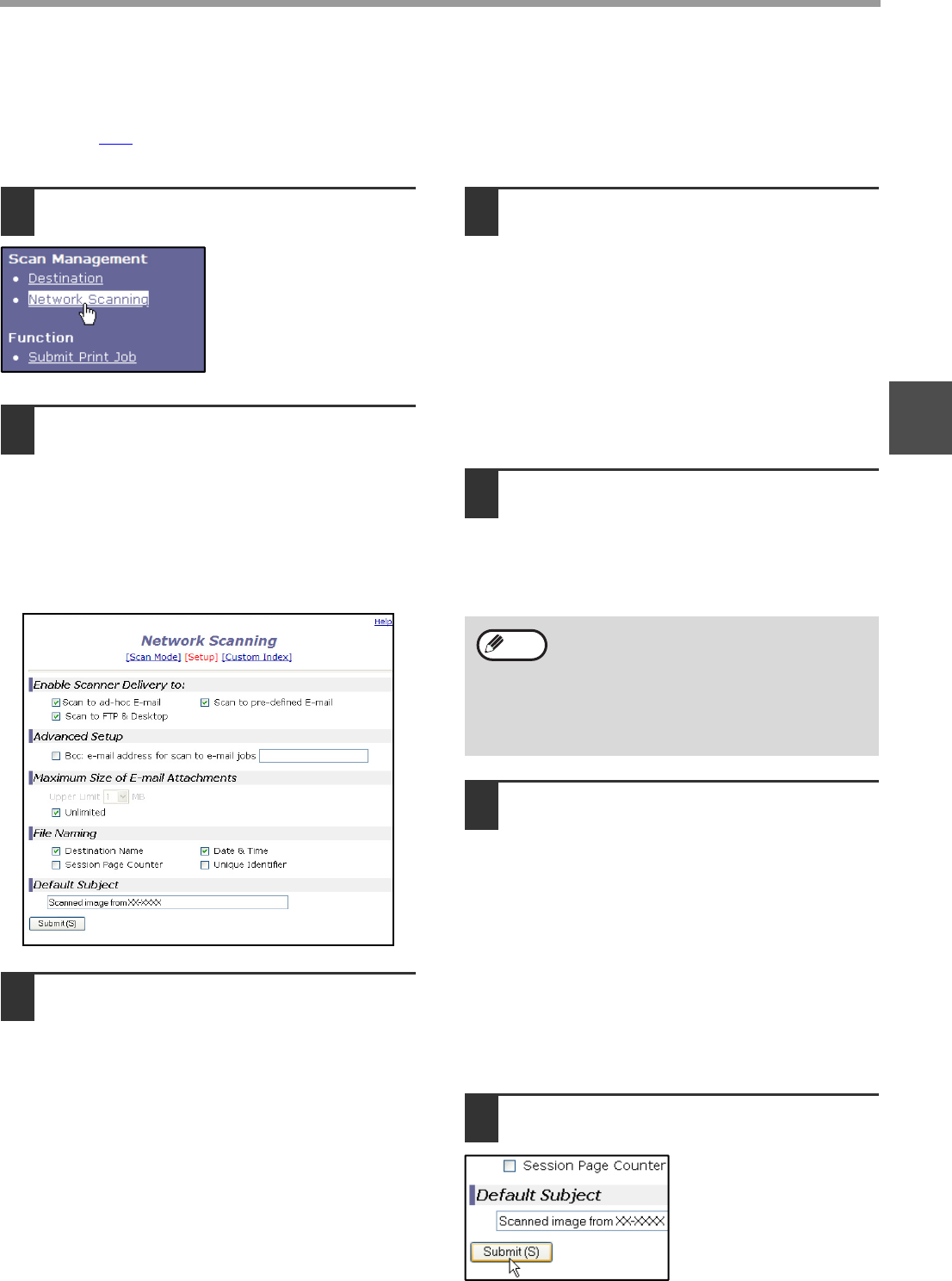 Click [Network Scanning] in the menu frame and configure the required settings. A password is required to access