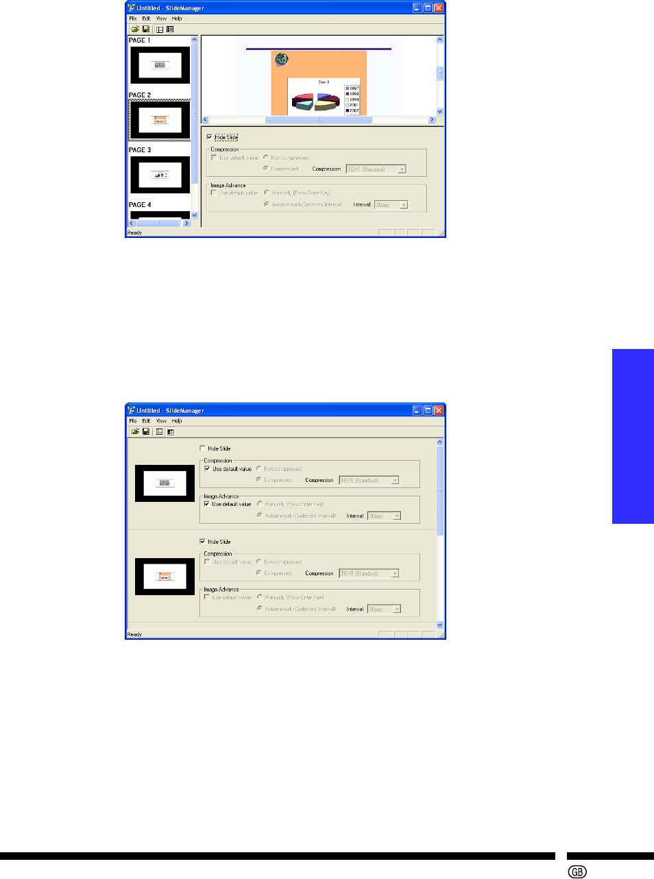 The properties of each slide (“Compression”, “Image Advance”) can be