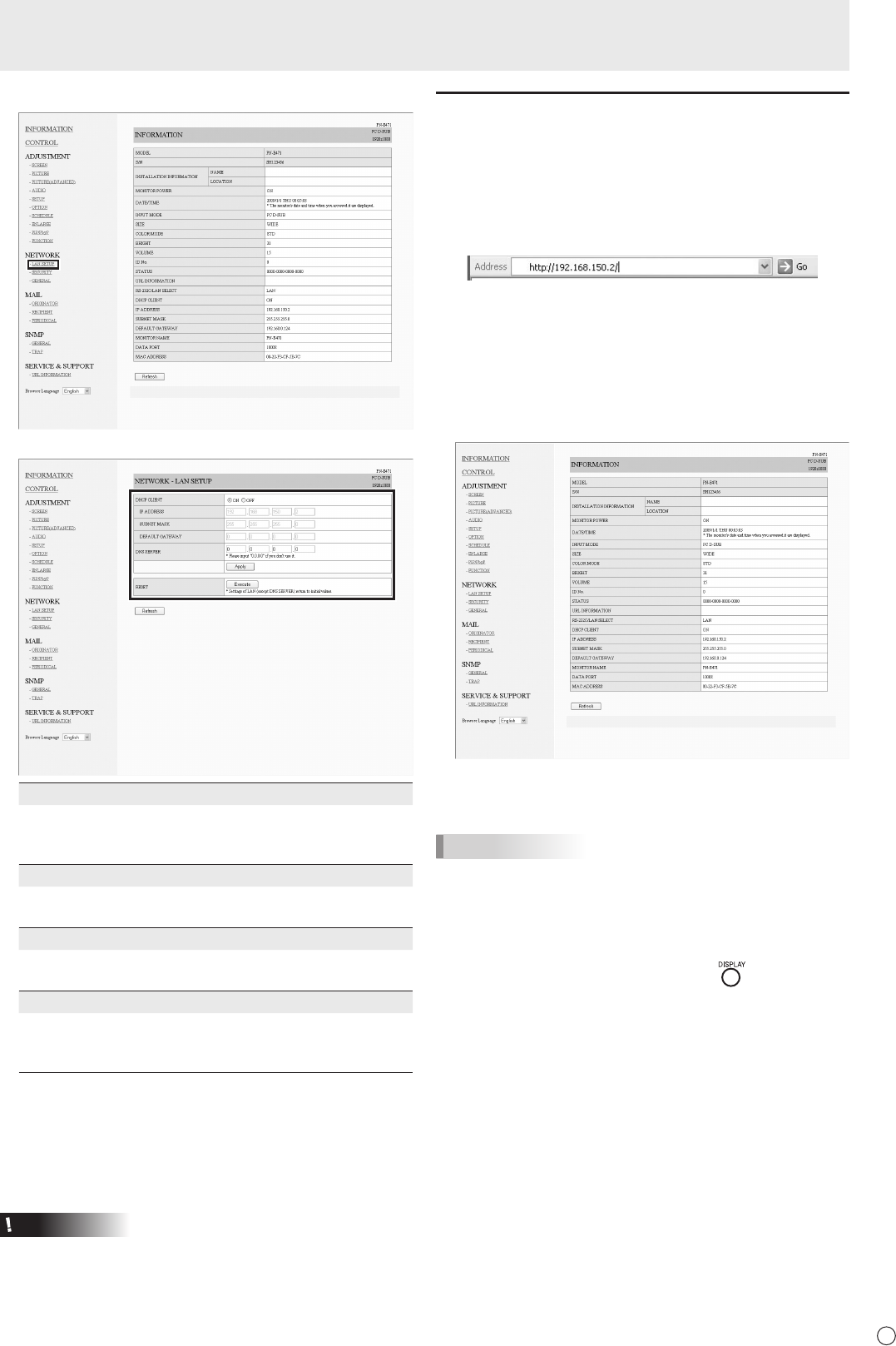 If the DHCP CLIENT is set to “OFF”, specify an IP