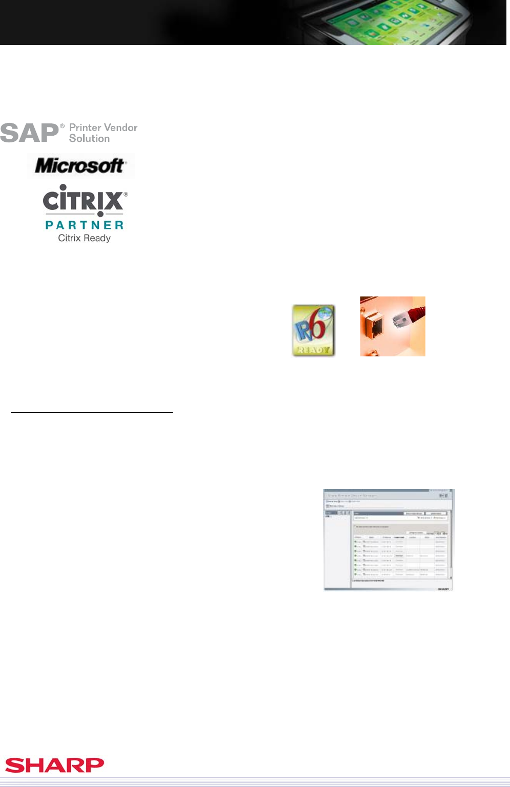 Sharp is a Citrix Ready Technology Member, giving us access to testing resources,