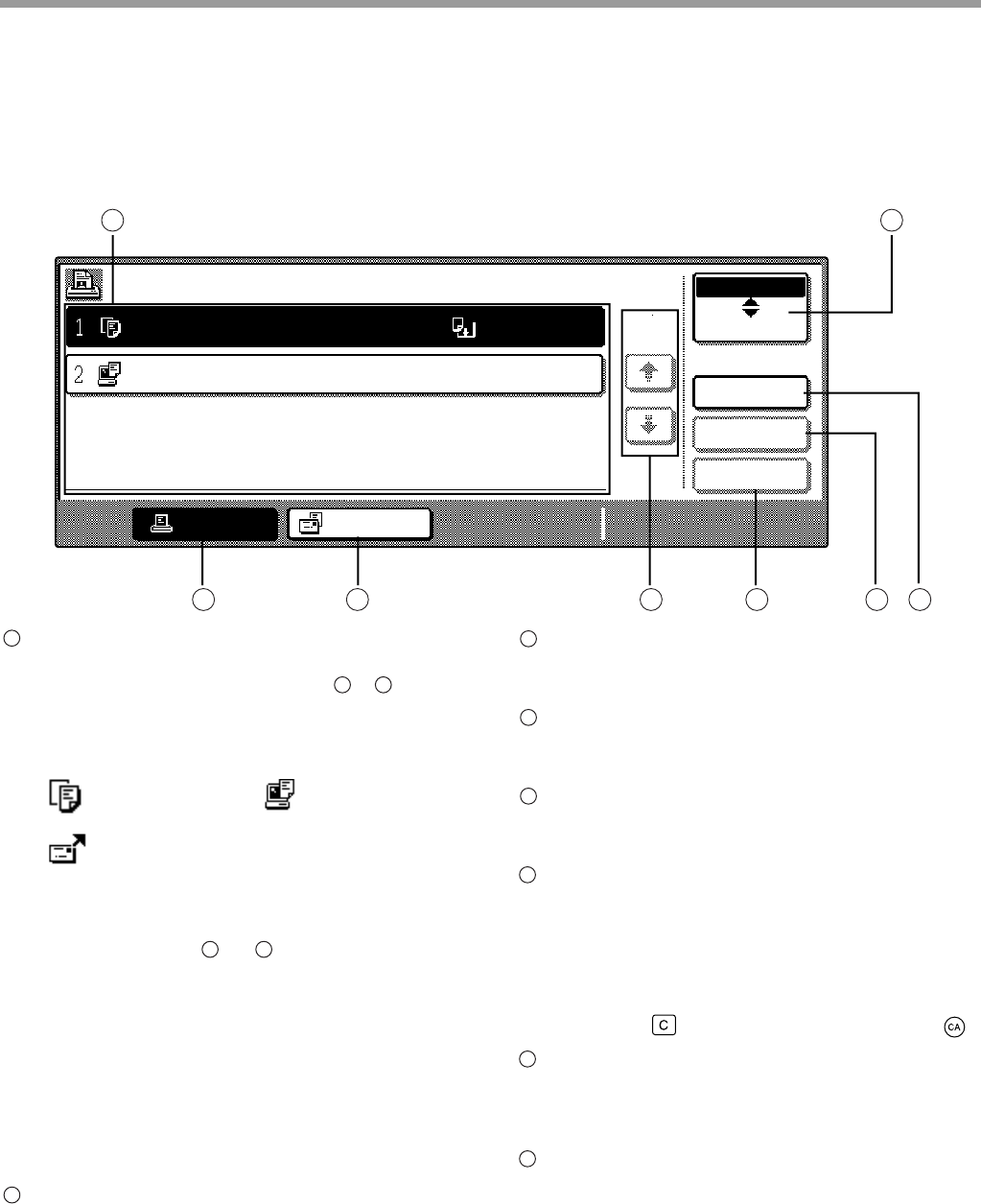 Este tela aparece quando é premida a tecla de [ESTADO DO TRABALHO] no painel de operação.