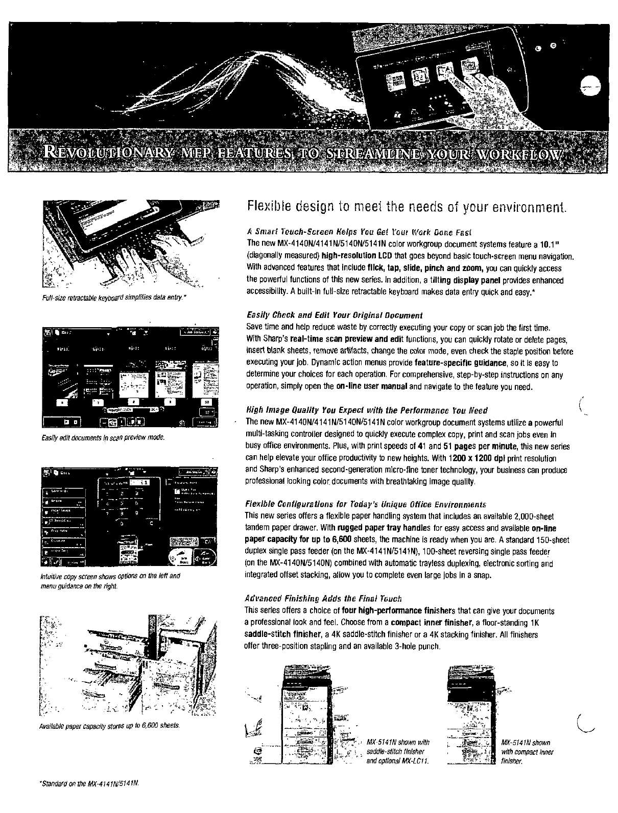 The new MX-4140N/4141N/5140Nf5141N color workgroup document systems utilize a powerful