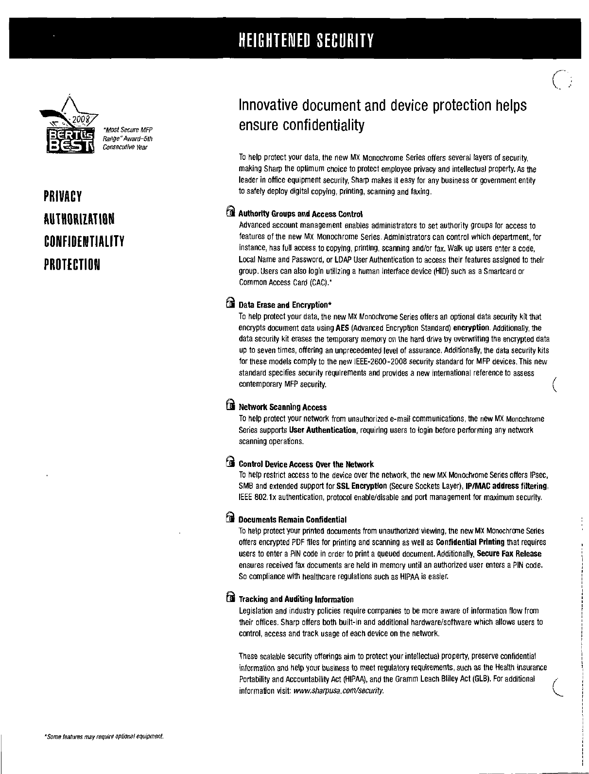 leader in office equipment security, Sharp makes it easy for any business or government entity