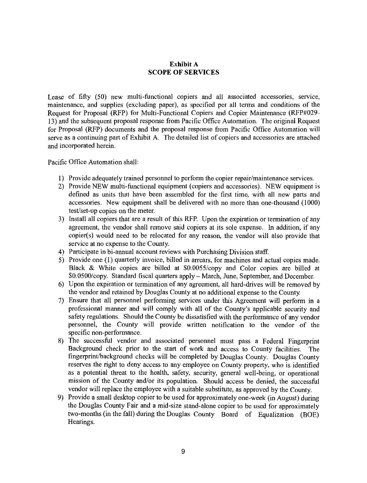 the Douglas County Fair and a mid-size stand-alone copier to be used for approximately