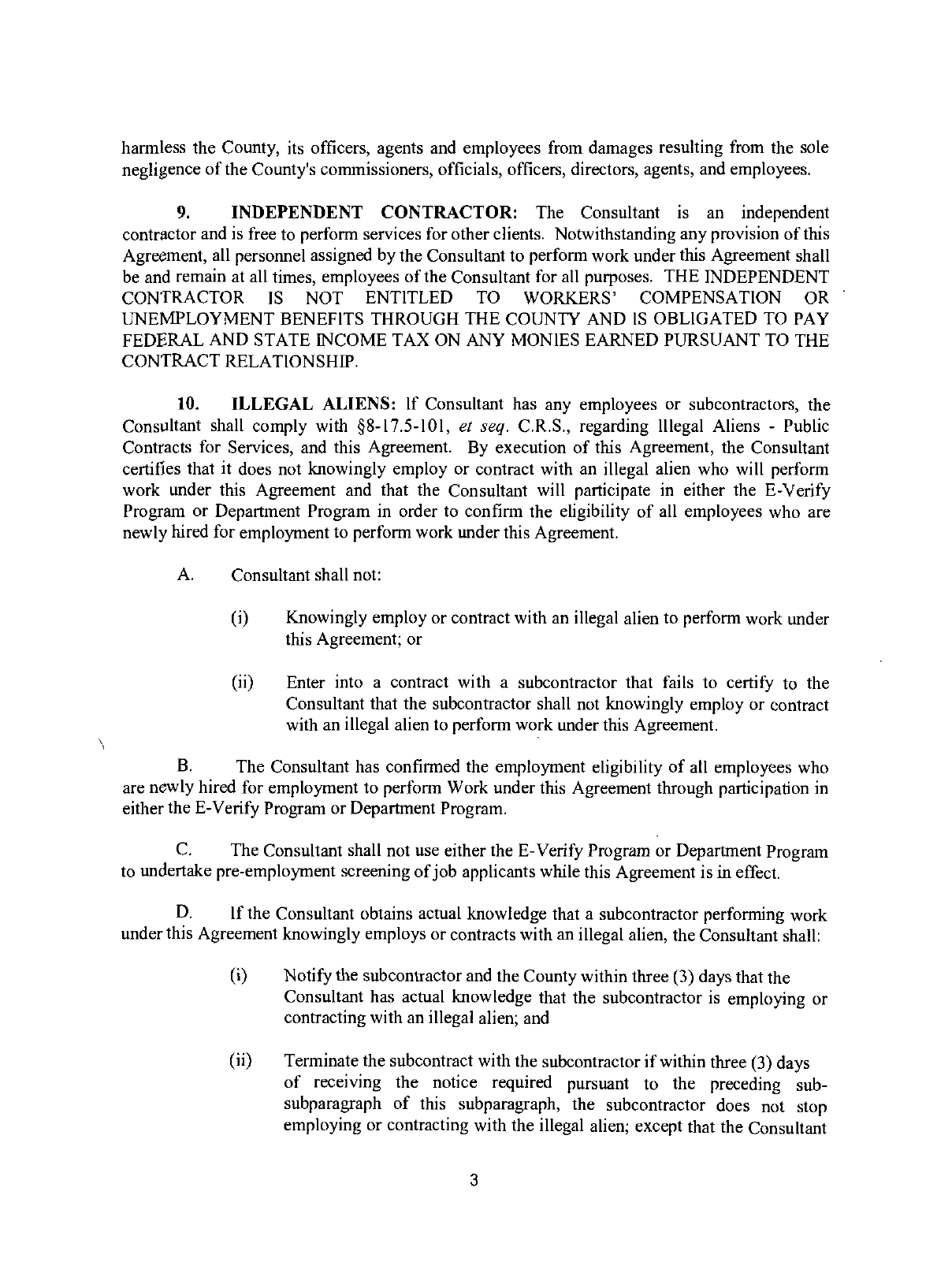 Consultant shall comply with §8-17.5-101, et seq. C.R.S., regarding Illegal Aliens - Public