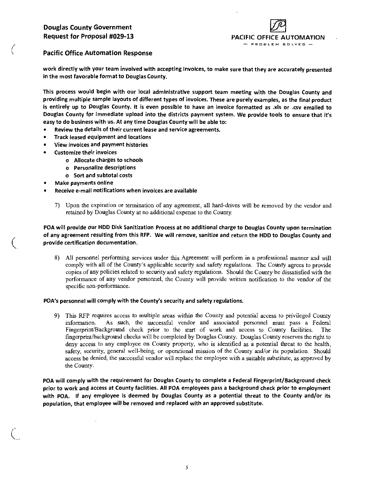 of any agreement resulting from this RFP. We will remove, sanitize and return the HDD to Douglas County and