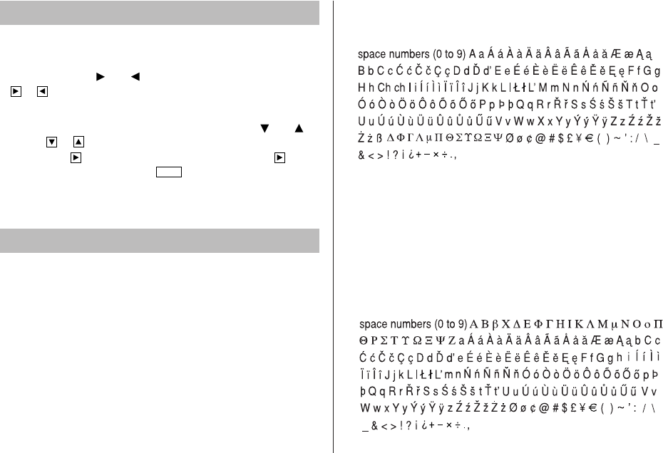 • Telephone and memo entries are stored by the first character of the