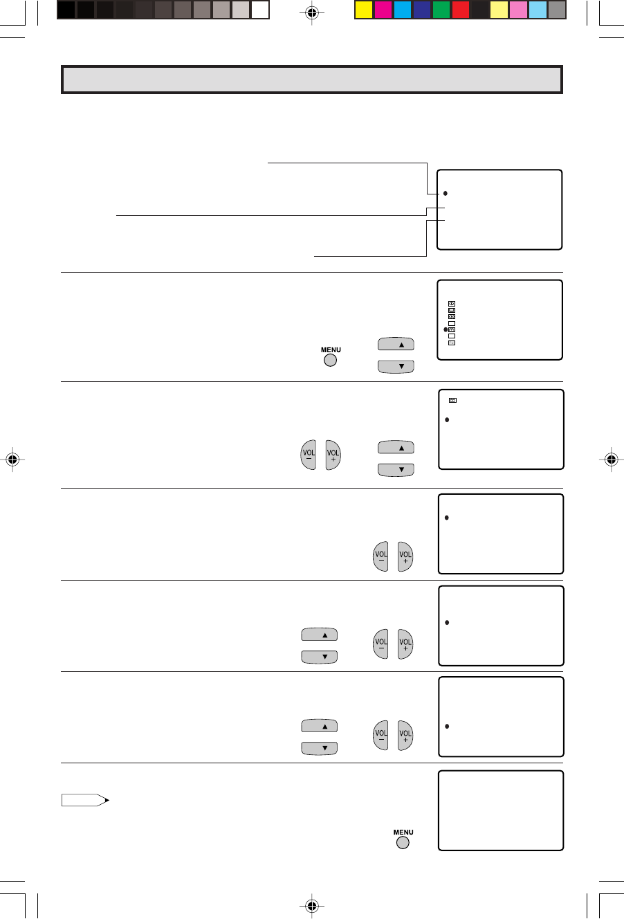 each selection, press the VOL