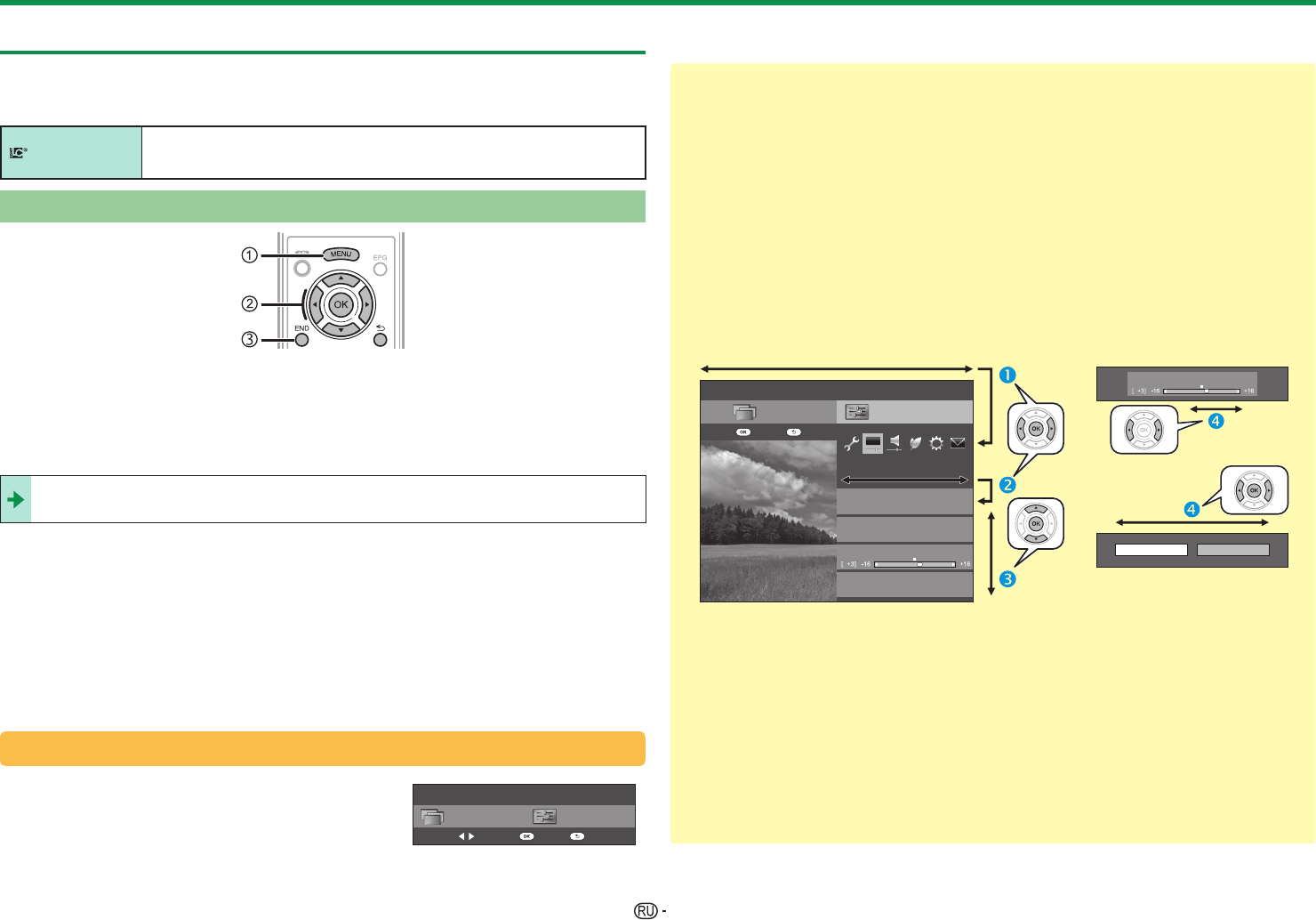«Меню» подразделяется на категории настроек для улучшения просмотра.