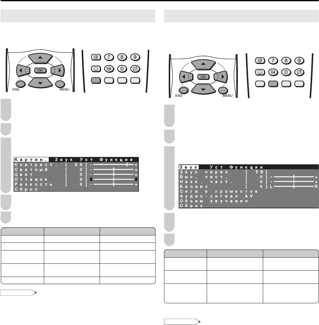 * Эти пункты не могут быть отрегулированы, когда “Звук через”