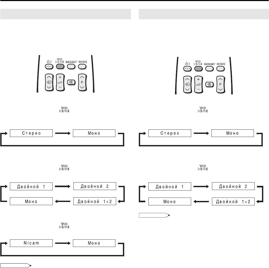 • Когда выбрано “Moнo”, звук ТВ выводится монофонически.